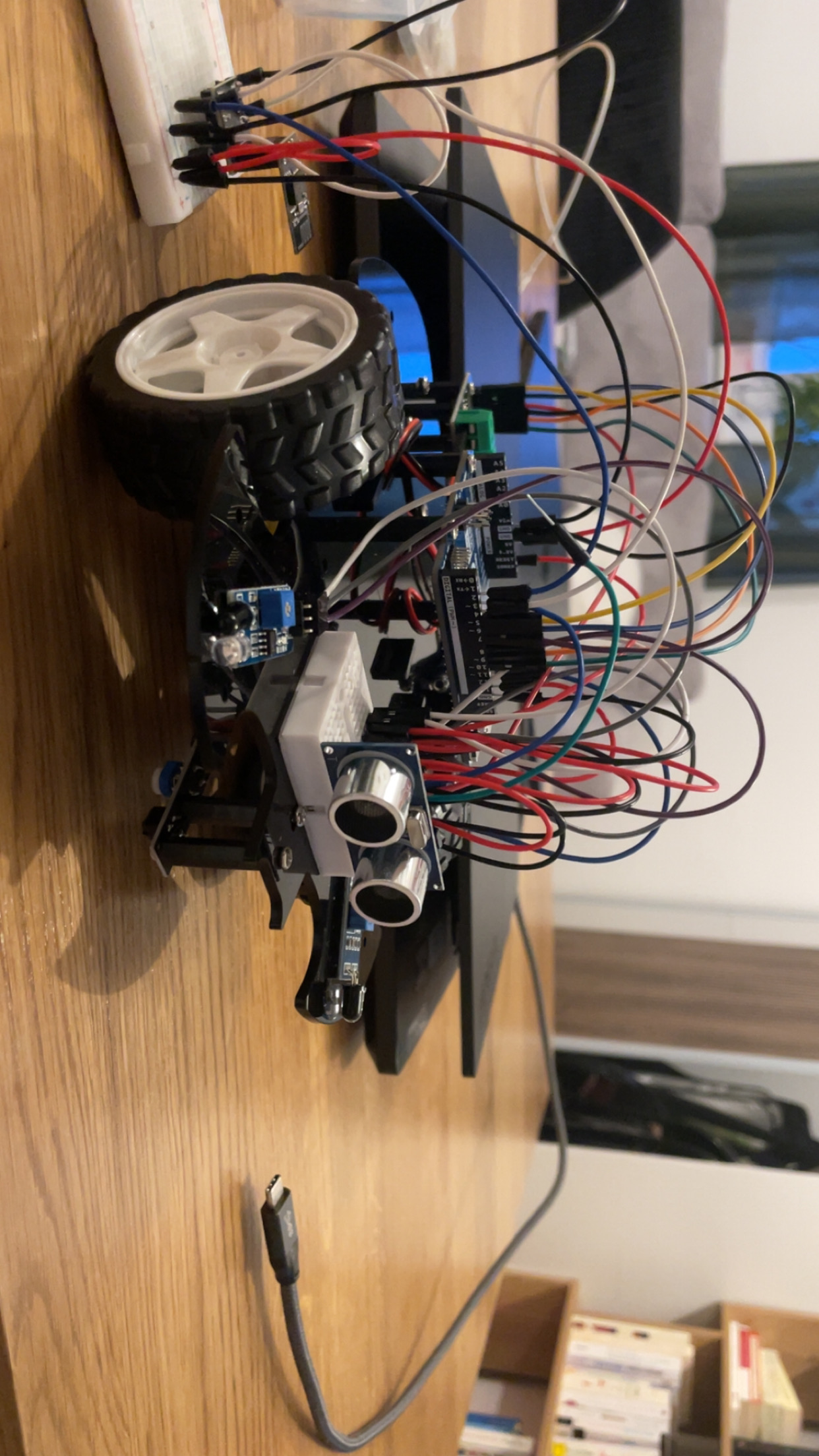 It's really fun watching this guy driving around, bumping into things and slowly reacting to it's environment. The way this was built was by following the guide on the SunFounder page. It's a detailed guide that goes over using every component individually to first understand it's significance before applying it to the car as a whole.
